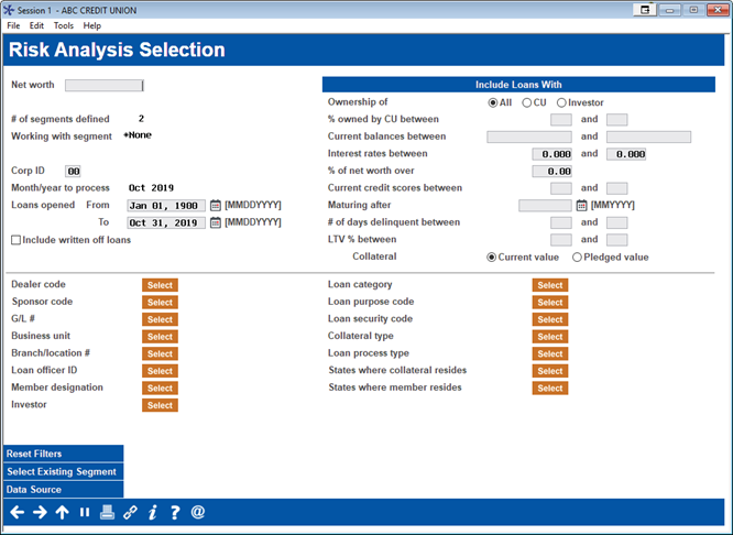 This is the first of four analysis screens which help you monitor the policy limits you have in place, analyze the credit quality of the segment itself, and to review the membership, product, and collateral makeup of the loans found in the segment. Vital to this feature is your ability to save your analytics month over month for trending purposes.